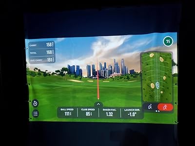 Bought this for my garage sim and could not be happier with it. I’ve hit a few thousand shots (a lot with the driver) into it already and I’ve noticed no signs of wear at all. I’m 9ft from the screen and it handles it like a champ and is very quiet. The screen came with the bungees to attach it to the frame I made as well. Don’t think you’ll beat this screen for the price!